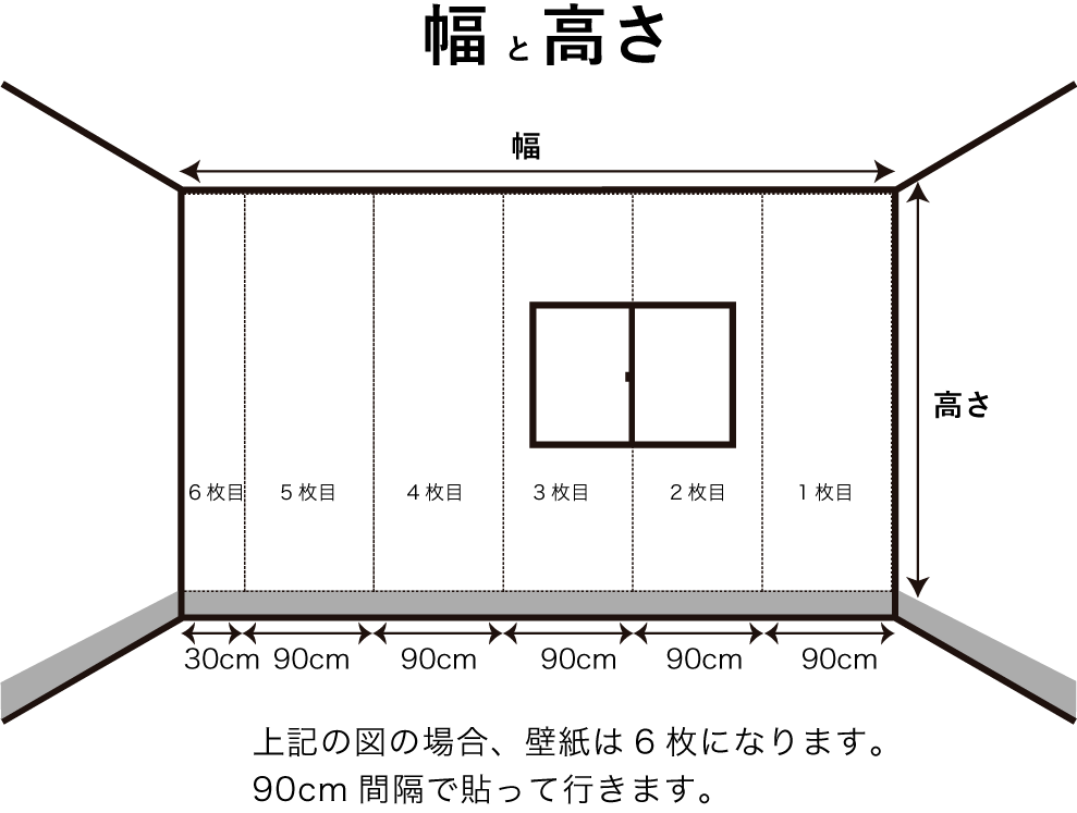 壁面を測る場合は、単純に幅と高さを測るだけです。