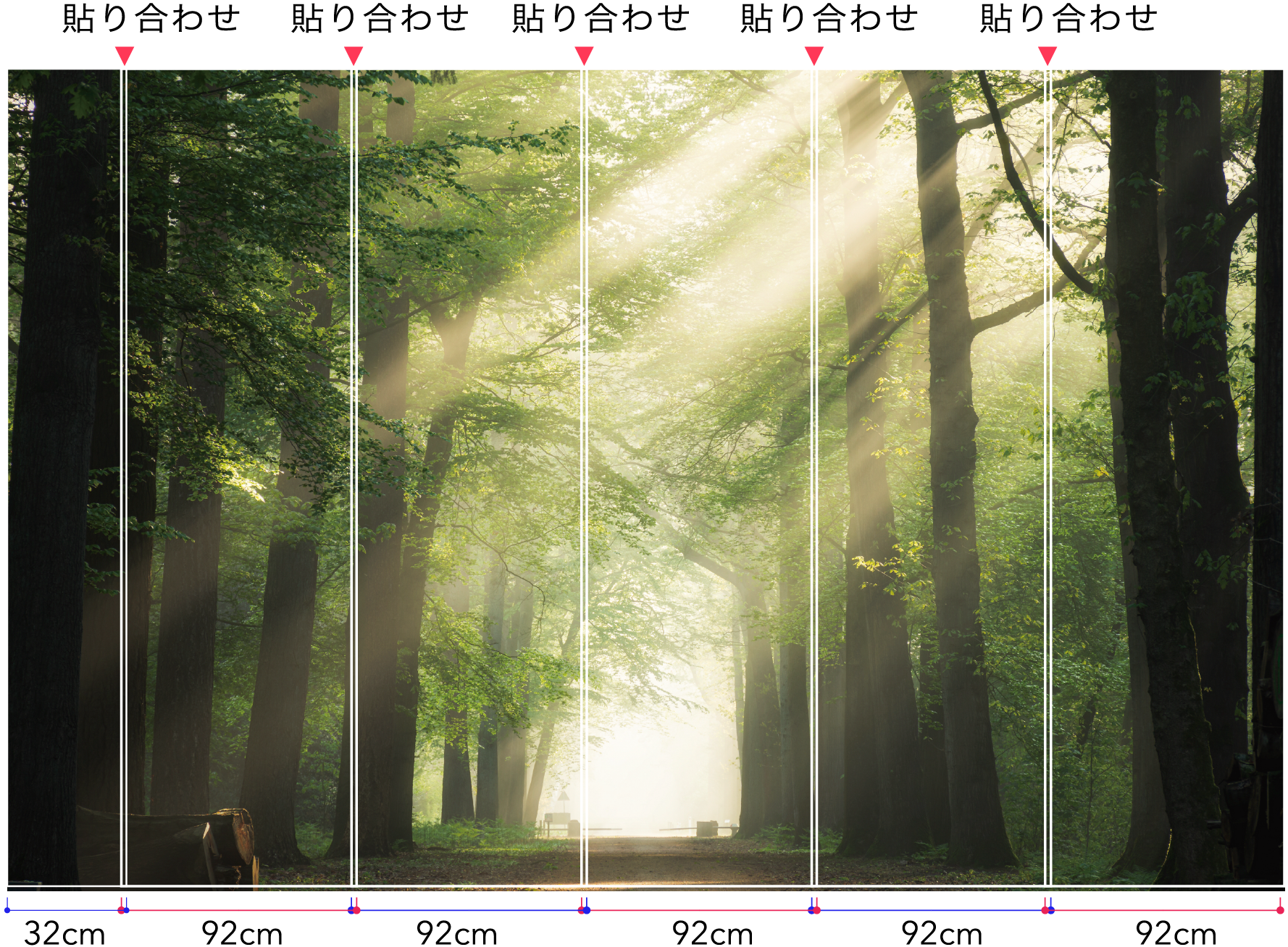 シートが複数枚に分割された場合、2枚目以降の両端各20〜30mmは[貼り合わせ]となります。施工時のズレを軽減するために重ね合わせる部分です。